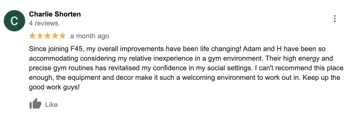 Whatever your level of fitness - whether you're a frequent gym bunny or complete fitness newbie, F45 was designed to get you RESULTS! And you'll leave every visit with a smile on your face!